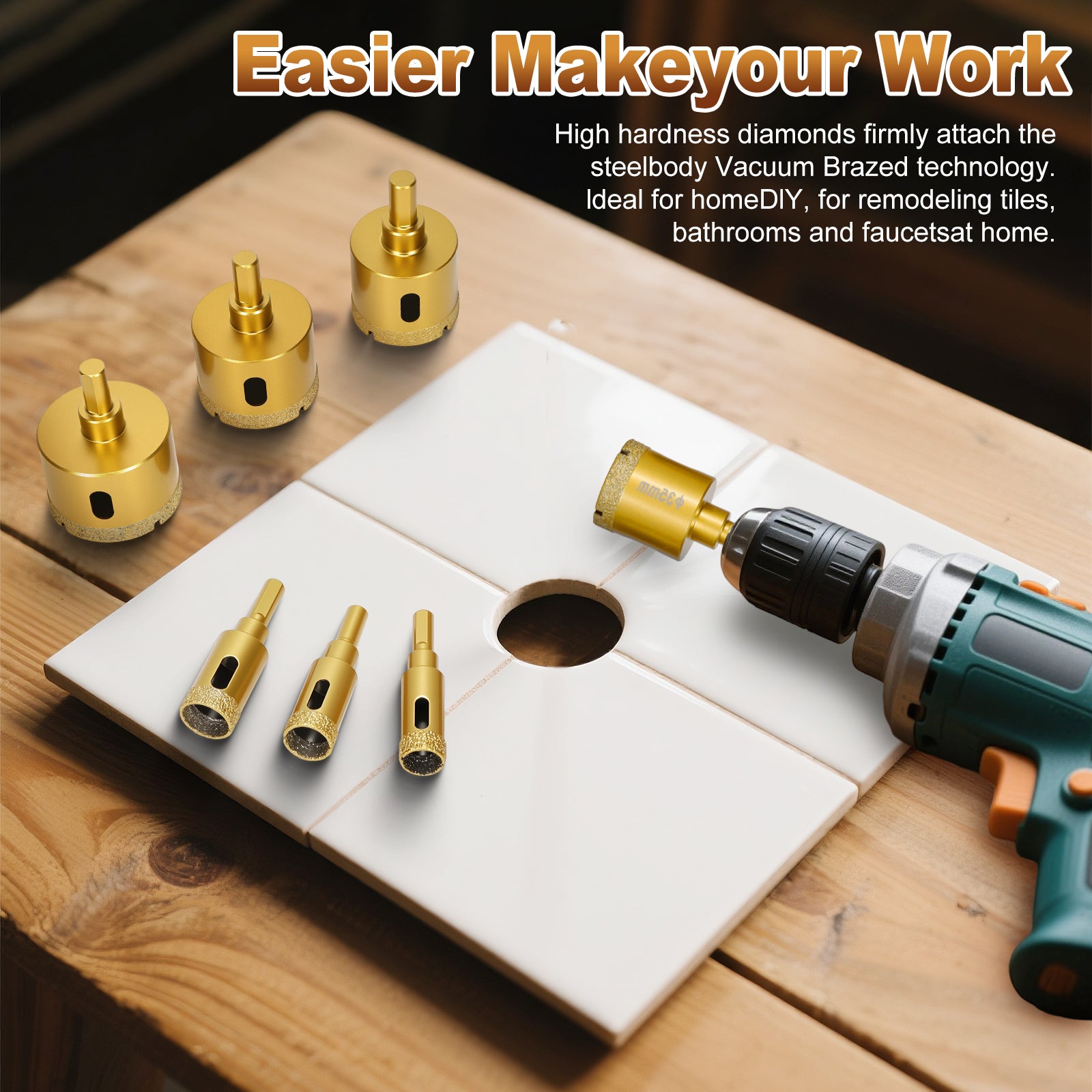 15Pcs Diamond Hole Saw Drill Bit Set for Tile, Glass, Porcelain - 6mm to 50mm - Professional Grade, Dry/Wet Use